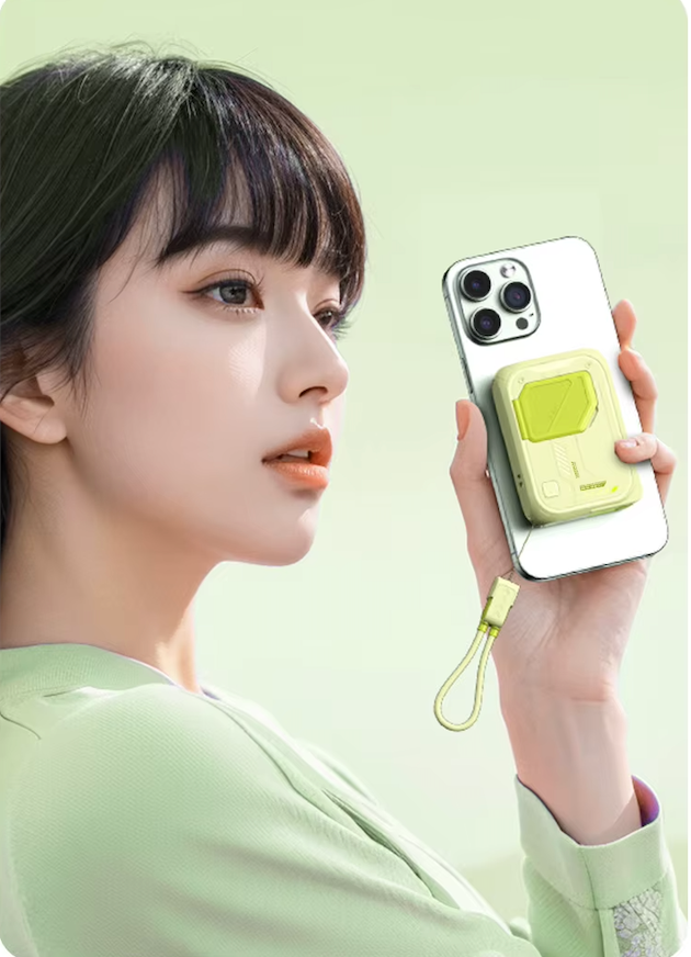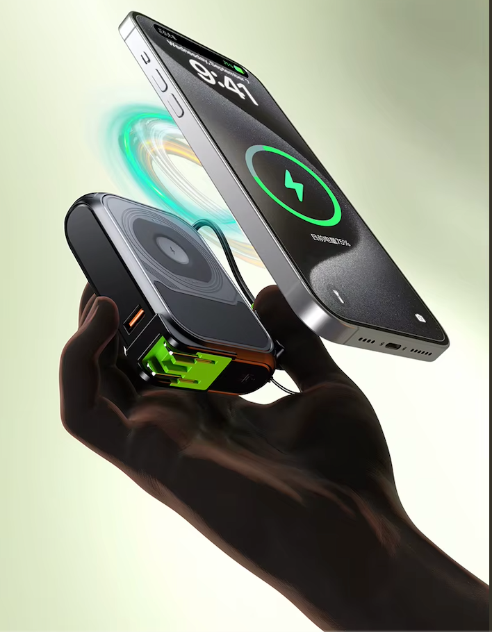 - Câble USB-C intégré : tirez le câble et branchez-le à votre téléphone pour une charge rapide.